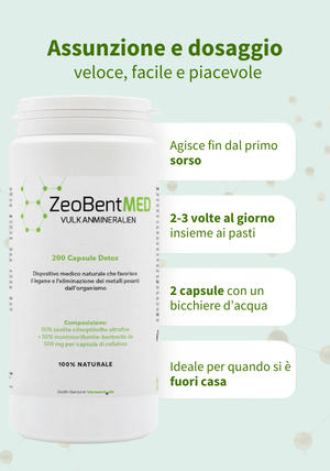 ZeoBentMED 200 capsule detox, dispositivo medico con certificato CE