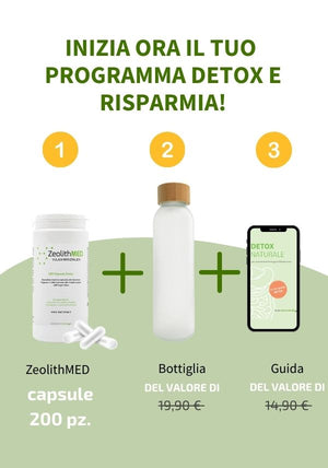 Il set detox offre una combinazione ben studiata del prodotto medico clinicamente testato ZeolithMED, accessori di alta qualità e una solida conoscenza dell'applicazione, ideale per il vostro programma di disintossicazione di 12 settimane.